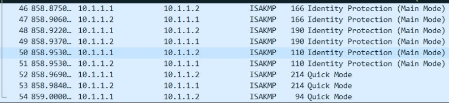 IKEv1协商阶段2的目的就是建立用来安全传输数据的IPSec SA,并为数据传输衍生出密钥。这一阶段采用快速模式(Quick Mode)。该模式使用IKEv1协商阶段1中生成的密钥对ISAKMP消息的完整性和身份进行验证,并对ISAKMP消息进行加密,故保证了交换的安全性。